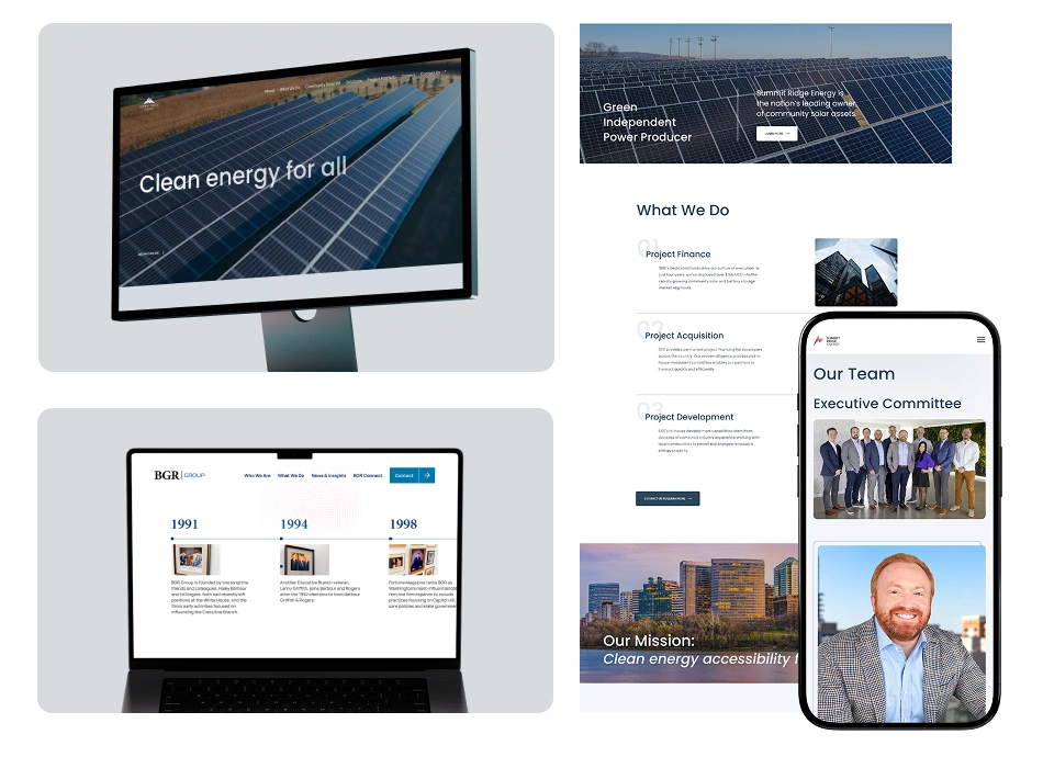 Summit Ridge Energy’s digital presence was modernized through a fast-paced, agile design and development process to align with critical acquisition timelines. The work included content strategy, full-scale website design, and video production showcasing their solar energy projects and community impact.